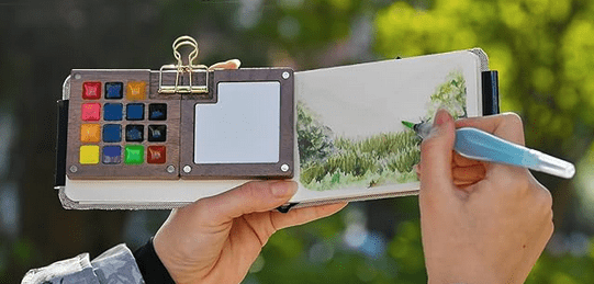 Les jours sans vent, il faut bien s’occuper… décorer le journal de bord, croquer les dauphins et les goélands, les fleurs du rivage… joli cadeau pour débutant en aquarelle, original et plein de poésie.